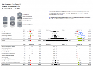 The original report included the information in several tables, pie charts and text and was spread across multiple pages. Some of the absolute amounts had to be re-engineered from the values in the text and the percentages shown in the pie charts. This approach clearly shows where there have been increases and decreases in income and spend.