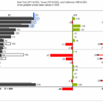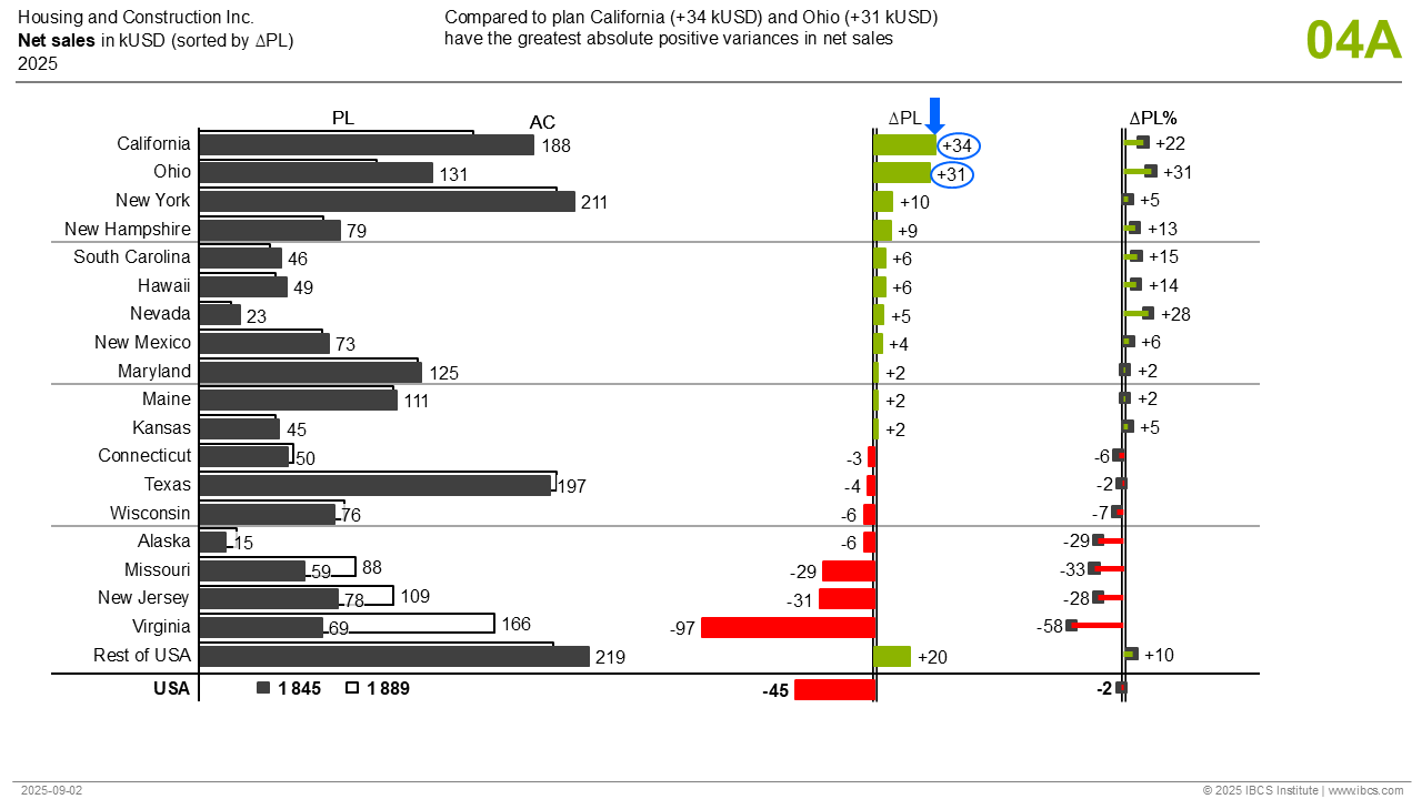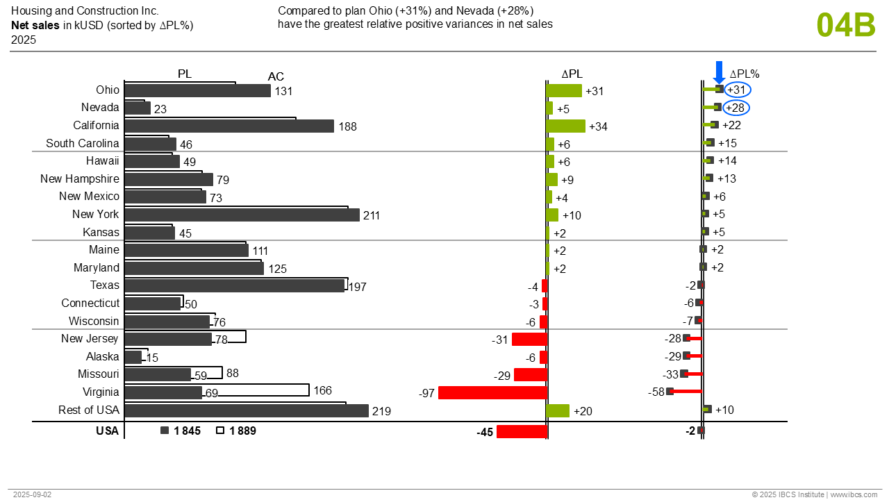 The first tier of this template compares different scenarios in a grouped bar chart. The second and third tiers show different absolute and relative variance charts. E.g., these 3-tier charts are being used to analyze the data structure of different scenarios.
