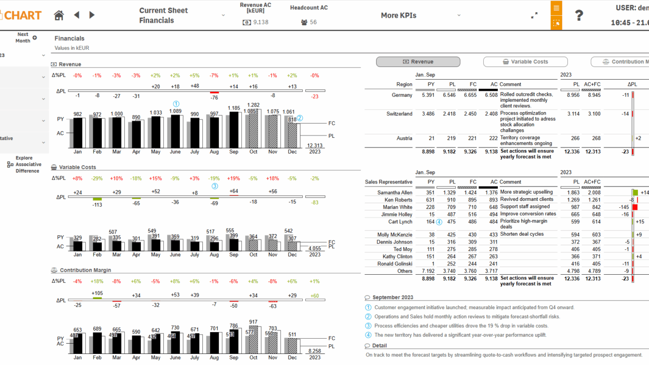TRUECHART erweitert Ihre Berichts- und Analyseprozesse um plattformübergreifende „intelligente Kommentare“, die es den Beteiligten ermöglichen, jedem Diagramm, jeder Grafik, jedem Bericht und jeder Kennzahl Kommentare, Erklärungen und Kernaussagen hinzuzufügen. Diese Anmerkungen werden zentral gespeichert, mit Schlüsselwerten verknüpft und stehen dynamisch für die Anzeige in allen relevanten Berichten, Systemen und Plattformen zur Verfügung, sodass Ihre Kernaussagen und Erklärungen jederzeit und überall verfügbar sind.