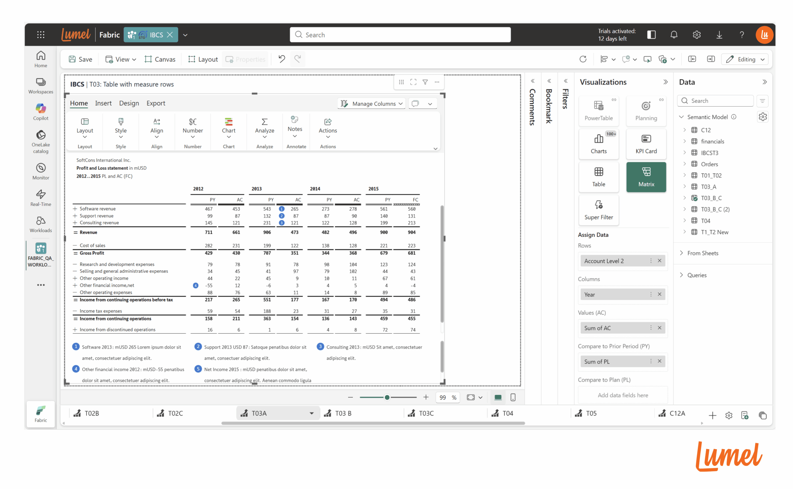 Screenshot of an EPM report featuring structured notes, standardized table formatting, footer section, and calculated measure rows.